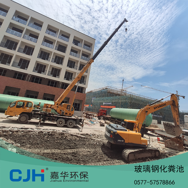2021.6.17溫州嘉華環(huán)保玻璃鋼化糞池2只100噸發(fā)貨:溫州瑞安汀田學校